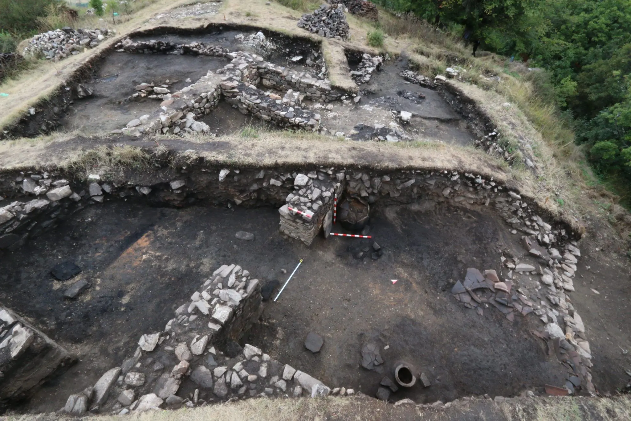 През юли 2016 г. в насипа на едно от помещенията на сградата, екипът от НИМ откри фрагменти от висок глинен съд, чиято основа е кух, обърнат пресечен конус, който преминава в цилиндрична шийка, снабдена с три дръжки и завършва с разлата полусфера с диаметър 55-60 см. Формата и етнографските паралели подсказват използването му като жарник, т.е. мангал за отоплението на помещението. Глинени жарници (мангали), но с по-различна форма, са известни още от бронзовата епоха.